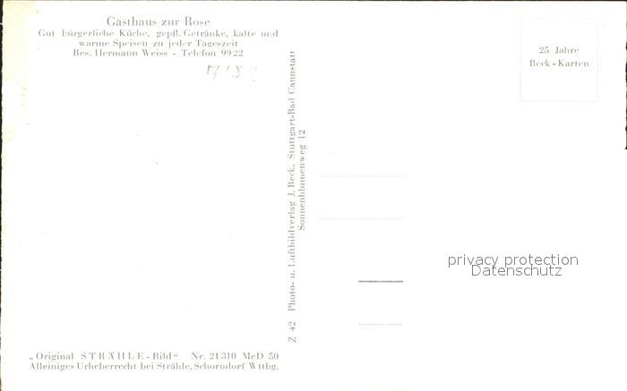 32179360 Rietenau Gasthaus zur Rose Bad postalisch nicht gelaufen Erhaltung siehe scans KatCode: 11110008119087