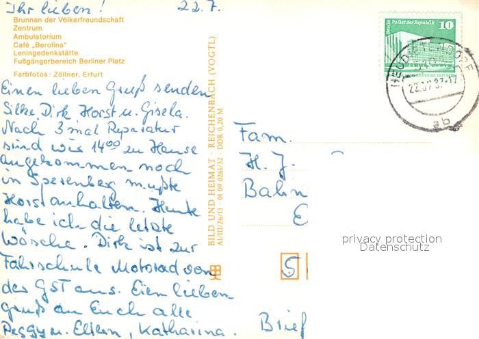 73073607 alte Postkarte Rieth Erfurt Brunnen Zentrum Ambulatorium Cafe Berolina Leningedenkstaette Berliner Platz postalisch gelaufen Erhaltung siehe scans [WerneD78] KatCode: 11110016051000
