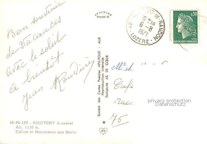 13590144 Rieutort-de-Randon Eglise et Monuments aux Morts KatCode 11170048248127