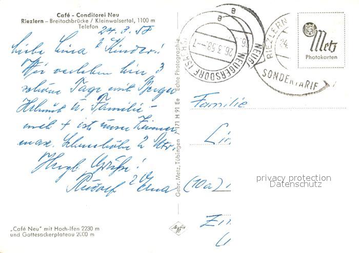 13525985 Riezlern Kleinwalsertal Vorarlberg Cafe Conditorei Neu Breitachbrücke KatCode 11390