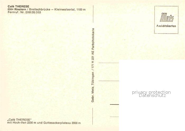 12603885 Riezlern Kleinwalsertal Vorarlberg Cafe Therese postalisch nicht gelaufen Erhaltung siehe scans [LiesaD40] KatCode: 11390
