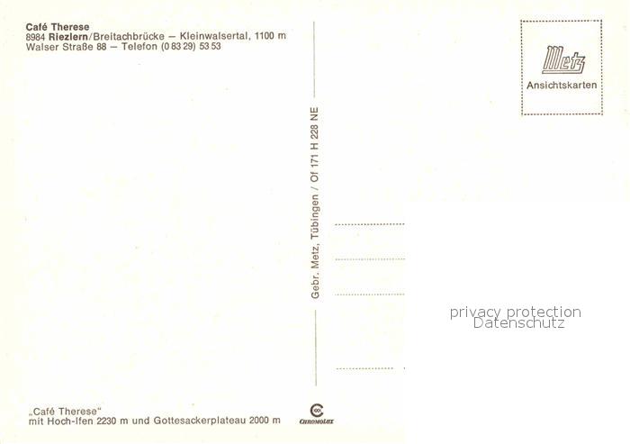 12603877 Riezlern Kleinwalsertal Vorarlberg Cafe Therese postalisch nicht gelaufen Erhaltung siehe scans [LiesaD40] KatCode: 11390