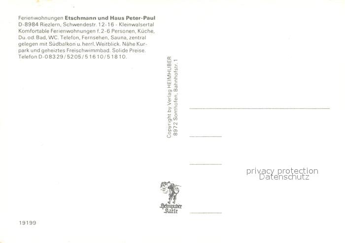 73323332 Riezlern Kleinwalsertal Vorarlberg Ferienwohnungen Etschmann postalisch nicht gelaufen Erhaltung siehe scans [FriedD77] KatCode: 11390