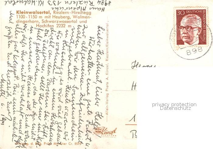 72958428 alte Postkarte Riezlern Kleinwalsertal Vorarlberg Fliegeraufnahme Heuberg Walmendingerhorn Schwarzwassetal Hochifen postalisch gelaufen Erhaltung siehe scans [NatalD47] KatCode: 11390