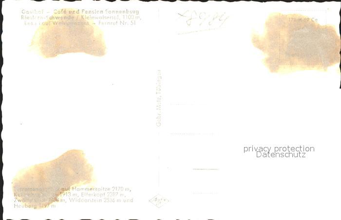 11799117 Riezlern Kleinwalsertal Vorarlberg Gasthof Pension Sonnenburg postalisch nicht gelaufen Erhaltung siehe scans KatCode: 11390