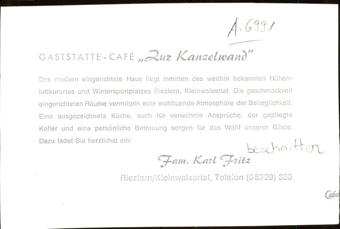 11110384 Riezlern Kleinwalsertal Vorarlberg Gaststätte Cafe Zur Kanzelwand KatCode 11390
