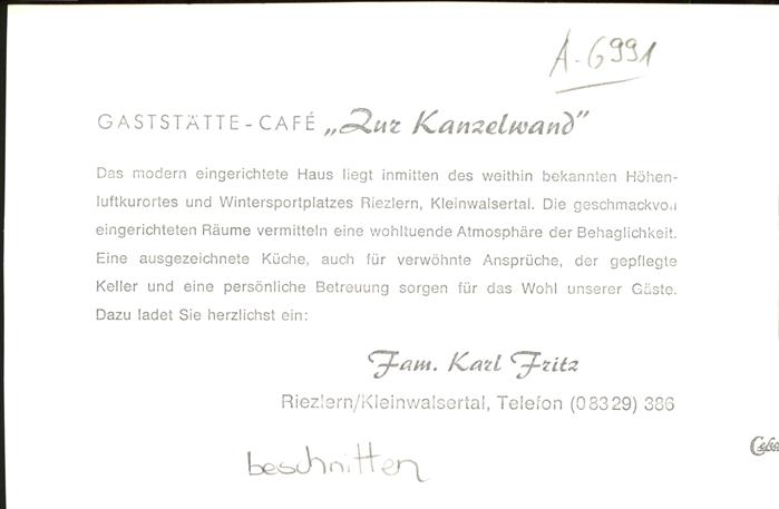 11110382 Riezlern Kleinwalsertal Vorarlberg Gaststätte Cafe Zur Kanzelwand KatCode 11390