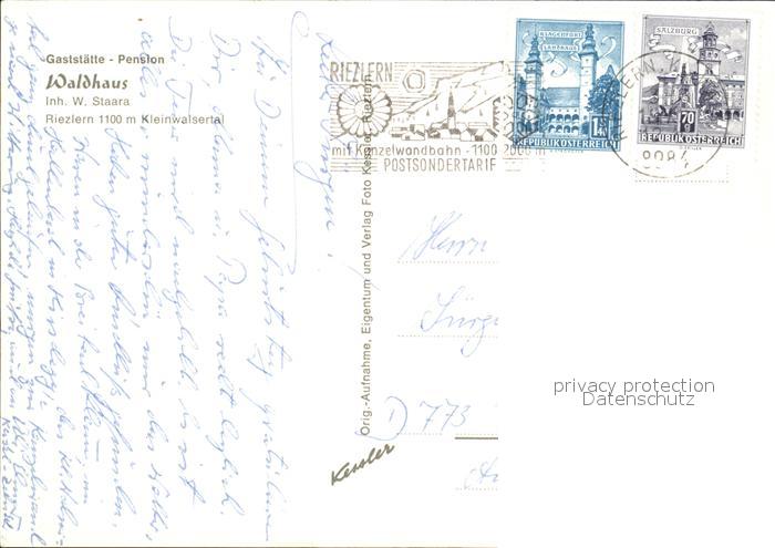72490521 alte Postkarte Riezlern Kleinwalsertal Vorarlberg Gaststaette Pension Waldhaus postalisch gelaufen Erhaltung siehe scans KatCode: 11390