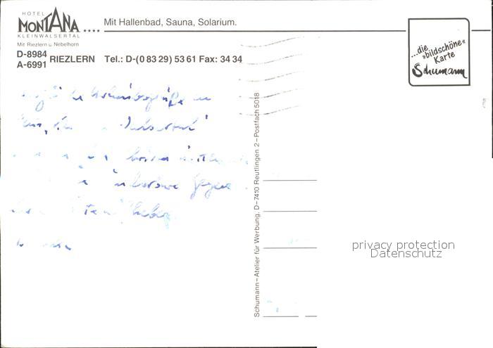 72376581 alte Postkarte Riezlern Kleinwalsertal Vorarlberg Gesamtansicht mit Alpenpanorama Hotel Montana postalisch gelaufen Erhaltung siehe scans KatCode: 11390
