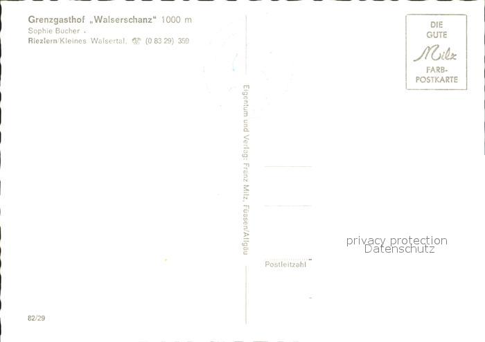 72303951 Riezlern Kleinwalsertal Vorarlberg Grenzgasthof Walserschanz postalisch nicht gelaufen Erhaltung siehe scans KatCode: 11390