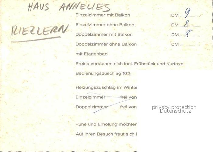 72009150 Riezlern Kleinwalsertal Vorarlberg Haus Annelies Gaststube postalisch nicht gelaufen Werbekarte (keine Postkarte) Erhaltung siehe scans KatCode: 11390