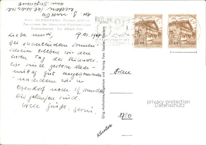 12117035 alte Postkarte Riezlern Kleinwalsertal Vorarlberg Haus Bergkranz postalisch gelaufen Erhaltung siehe scans KatCode: 11390