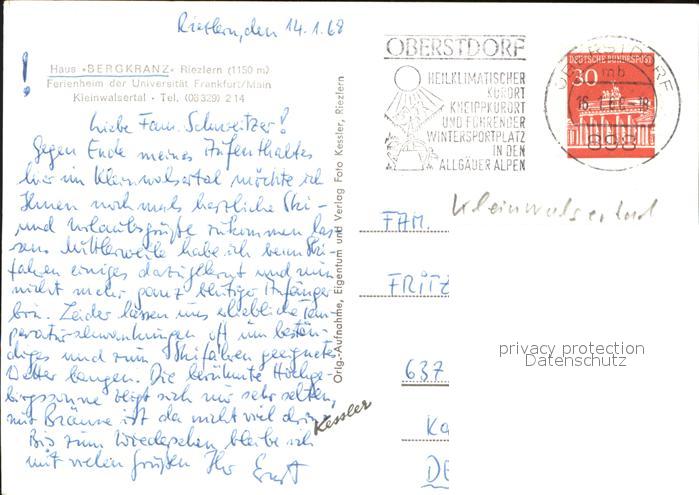 41636152 alte Postkarte Riezlern Kleinwalsertal Vorarlberg Haus Bergkranz postalisch gelaufen Erhaltung siehe scans KatCode: 11390