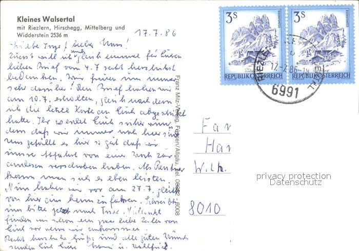72360762 alte Postkarte Riezlern Kleinwalsertal Vorarlberg Hirschegg Mittelberg Widderstein postalisch gelaufen Erhaltung siehe scans KatCode: 11390