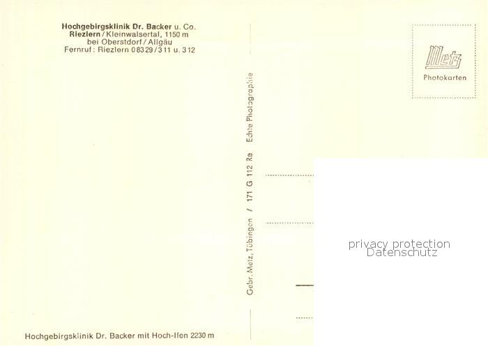 73272491 Riezlern Kleinwalsertal Vorarlberg Hochgebirgsklinik Backer postalisch nicht gelaufen Erhaltung siehe scans [KathaD81] KatCode: 11390