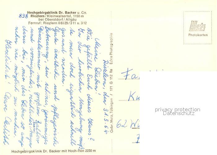 73271719 alte Postkarte Riezlern Kleinwalsertal Vorarlberg Hochgebirgsklinik postalisch gelaufen Erhaltung siehe scans [KathaD81] KatCode: 11390
