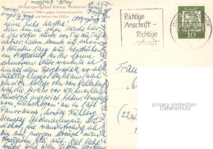 73310656 alte Postkarte Riezlern Kleinwalsertal Vorarlberg Hohe Ifen Schwarzwassertal postalisch gelaufen Erhaltung siehe scans [NatalD47] KatCode: 11390