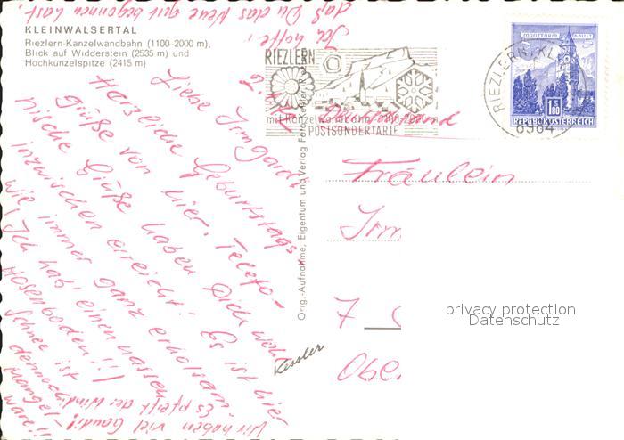 71899491 alte Postkarte Riezlern Kleinwalsertal Vorarlberg Kanzelwandbahn Blick auf Widderstein und Hochkunzelspitze Alpenpanorama postalisch gelaufen Erhaltung siehe scans KatCode: 11390