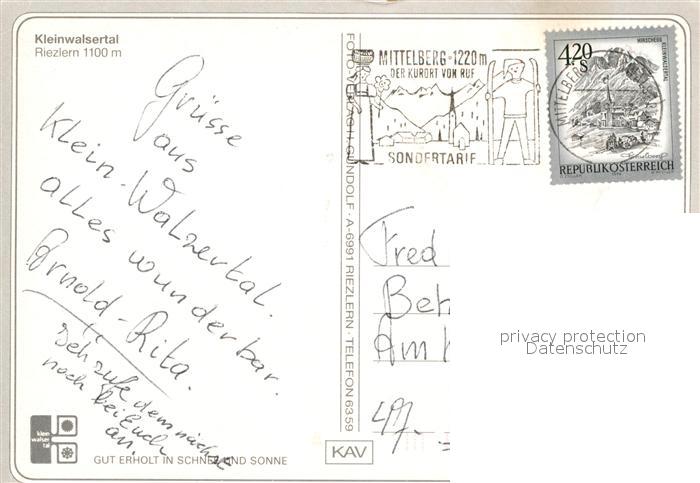 72929291 alte Postkarte Riezlern Kleinwalsertal Vorarlberg Kirche postalisch gelaufen Erhaltung siehe scans [NatalD47] KatCode: 11390