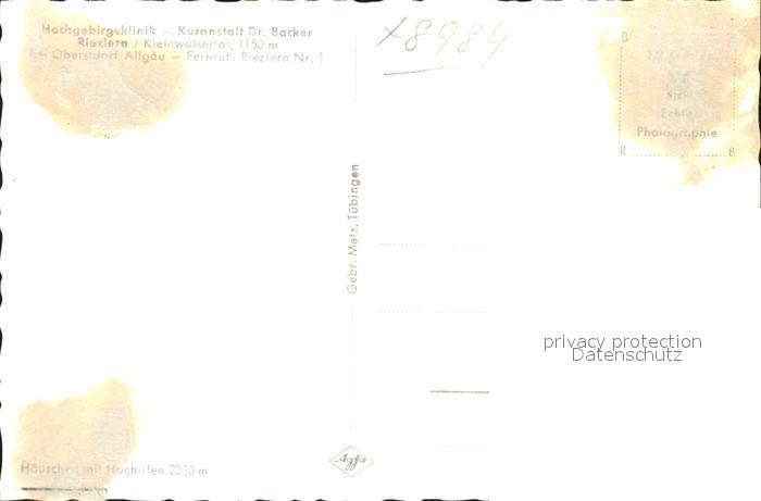 11799103 Riezlern Kleinwalsertal Vorarlberg Kuranstalt Dr Backer postalisch nicht gelaufen Erhaltung siehe scans KatCode: 11390