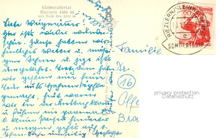 73591587 alte Postkarte Riezlern Kleinwalsertal Vorarlberg mit Hoch Ifen postalisch gelaufen Erhaltung siehe scans [LiesaD40] KatCode: 11390