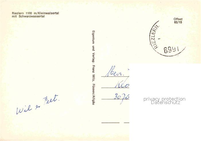 72862712 alte Postkarte Riezlern Kleinwalsertal Vorarlberg mit Schwarzwassertal postalisch gelaufen Erhaltung siehe scans [WerneD78] KatCode: 11390