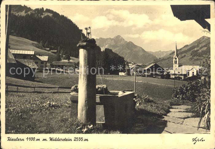 72085421 Riezlern Kleinwalsertal Vorarlberg mit Widderstein Brunnen Kirche postalisch nicht gelaufen Erhaltung siehe scans KatCode: 11390