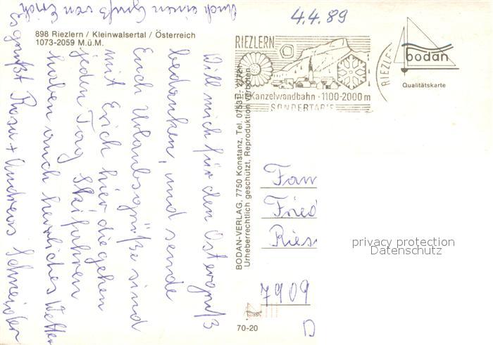 73629115 alte Postkarte Riezlern Kleinwalsertal Vorarlberg Panorama Kirche Schwimmbad postalisch gelaufen Erhaltung siehe scans [WerneD78] KatCode: 11390