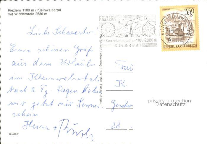 72394568 alte Postkarte Riezlern Kleinwalsertal Vorarlberg Panorama mit Widderstein Allgaeuer Alpen postalisch gelaufen Erhaltung siehe scans KatCode: 11390