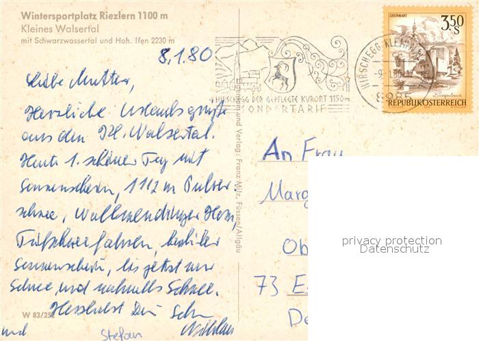 72929276 alte Postkarte Riezlern Kleinwalsertal Vorarlberg Schwarzwassertal Hoh. Ifen postalisch gelaufen Erhaltung siehe scans [NatalD47] KatCode: 11390
