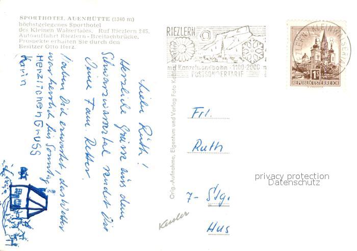73027886 alte Postkarte Riezlern Kleinwalsertal Vorarlberg Sporthotel Auenhuette postalisch gelaufen Erhaltung siehe scans [PaolaD17] KatCode: 11390