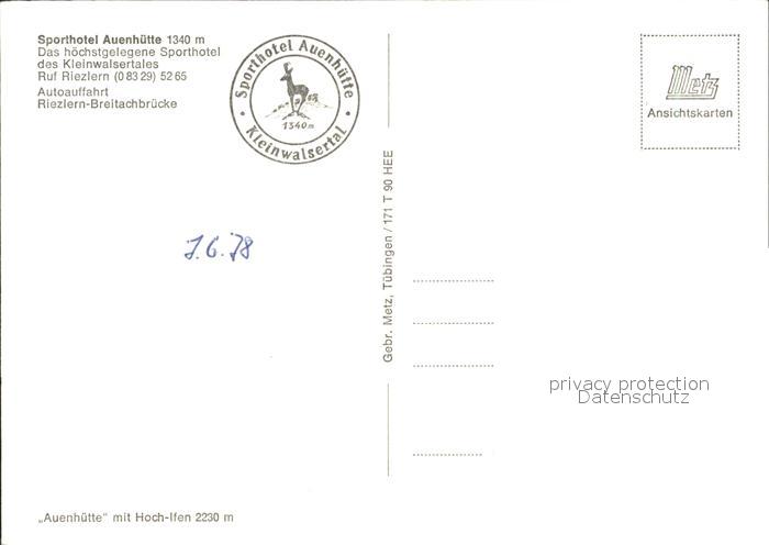 72181114 Riezlern Kleinwalsertal Vorarlberg Sporthotel Auenhuette postalisch nicht gelaufen Erhaltung siehe scans KatCode: 11390