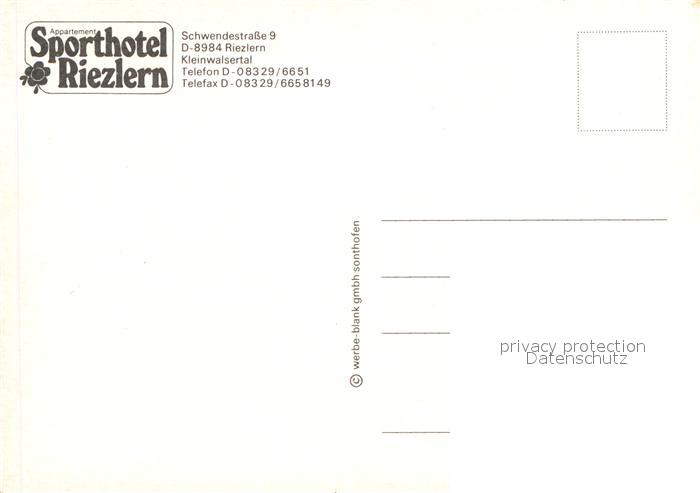 12947581 Riezlern Kleinwalsertal Vorarlberg Sporthotel Riezlern postalisch nicht gelaufen Erhaltung siehe scans [NatalD47] KatCode: 11390