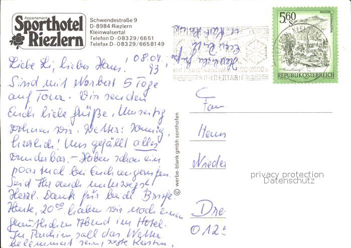72013038 alte Postkarte Riezlern Kleinwalsertal Vorarlberg Sporthotel Riezlern postalisch gelaufen Erhaltung siehe scans KatCode: 11390