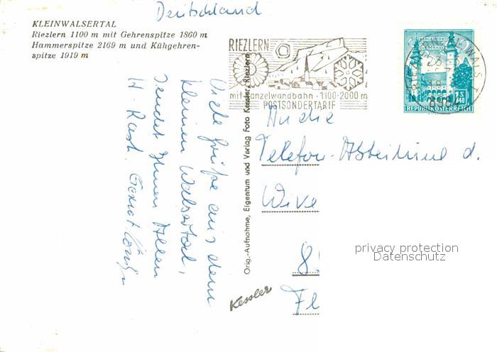 72840659 alte Postkarte Riezlern Kleinwalsertal Vorarlberg Winterpanorama mit Gehrenspitze Hammerspitze Kuehgehrenspitze Tannheimer Berge postalisch gelaufen Erhaltung siehe scans [FriedD77] KatCode: 11390
