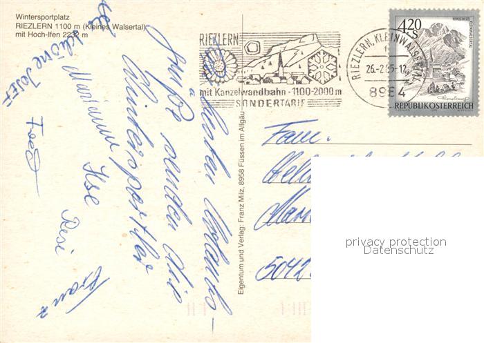 73588966 alte Postkarte Riezlern Kleinwalsertal Vorarlberg Winterpanorama mit Hoch Ifen Allgaeuer Alpen postalisch gelaufen Erhaltung siehe scans [FriedD77] KatCode: 11390
