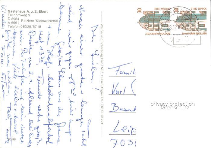 72064099 alte Postkarte Riezlern Schwende Kleinwalsertal Gaestehaus Ebert postalisch gelaufen Erhaltung siehe scans KatCode: 11390