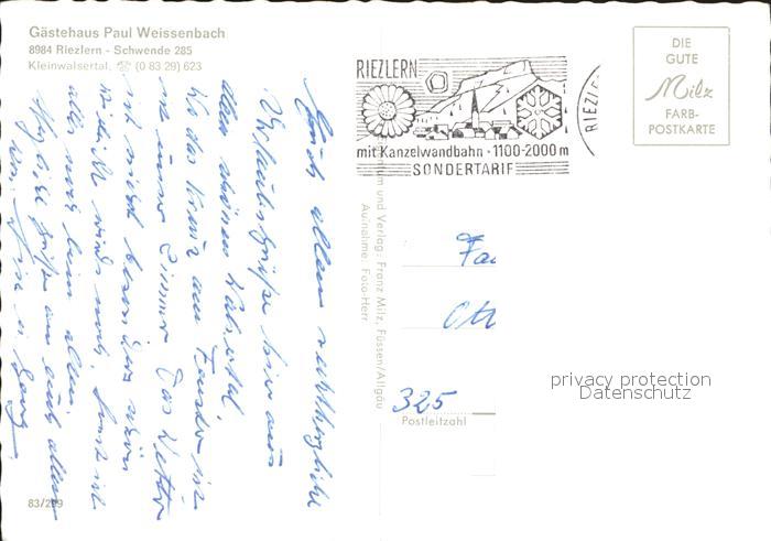 72071442 alte Postkarte Riezlern Schwende Kleinwalsertal Gaestehaus Paul Weissenbach Panorama postalisch gelaufen Erhaltung siehe scans KatCode: 11390