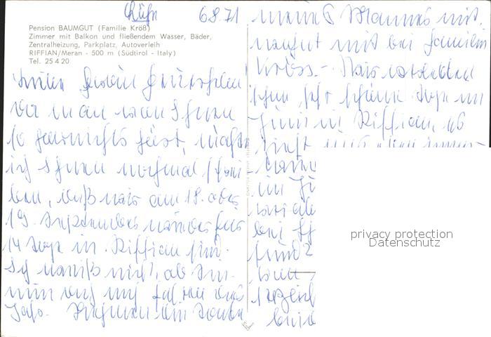 Riffian Meran Pension Baumgut postalisch nicht gelaufen Erhaltung siehe scans