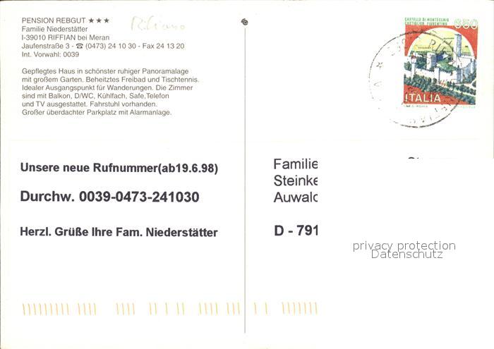 old postcard Riffian Meran Pension Rebgut postalisch gelaufen Erhaltung siehe scans