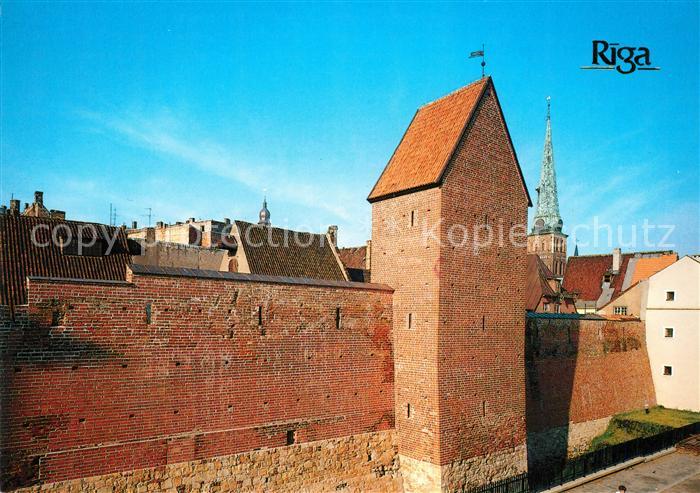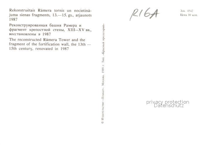 Riga Lettland Recontructed Raemera Tower fragment of fortification wall postalisch nicht gelaufen Erhaltung siehe scans [FriedD77]