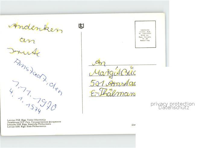 Riga Lettland Staatliche Philharmonie postalisch nicht gelaufen Erhaltung siehe scans