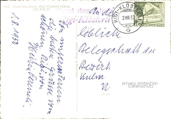 11648261 alte Postkarte Rigi Kloesterli Hotel des Alpes postalisch gelaufen Erhaltung siehe scans KatCode: 11470170500490