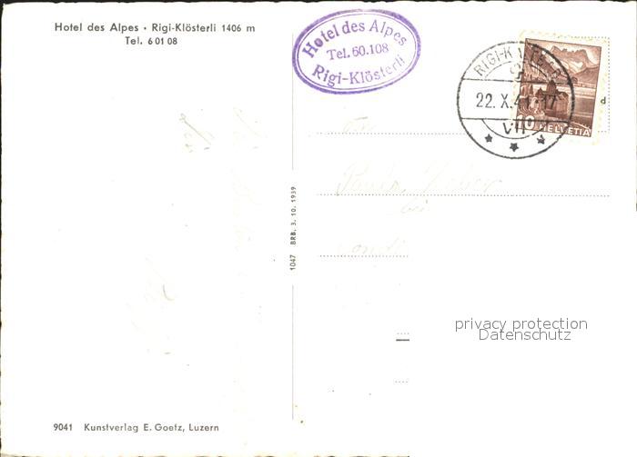 11837419 alte Postkarte Rigi Kloesterli Hotel des Alpes postalisch gelaufen Erhaltung siehe scans KatCode: 11470170500490