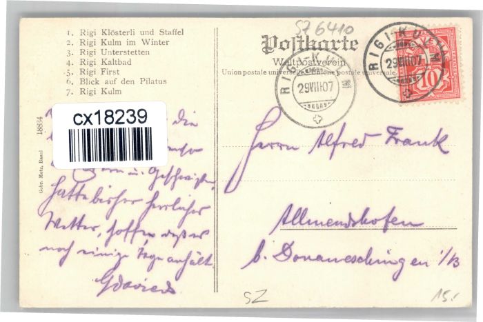 10724509 alte Postkarte Rigi Kulm postalisch gelaufen KatCode: 11470380255398
