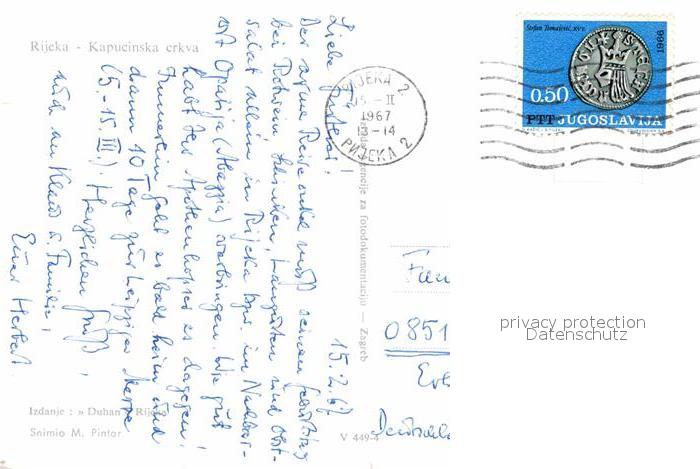 alte Postkarte Rijeka Fiume Kapuzinerkirche Unserer Lieben Frau postalisch gelaufen Erhaltung siehe scans [KathaD81]