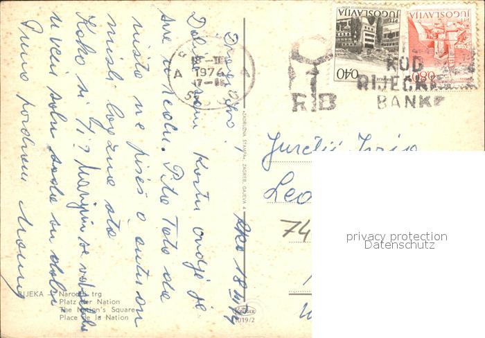old postcard Rijeka Fiume Platz der Nation postalisch gelaufen Erhaltung siehe scans