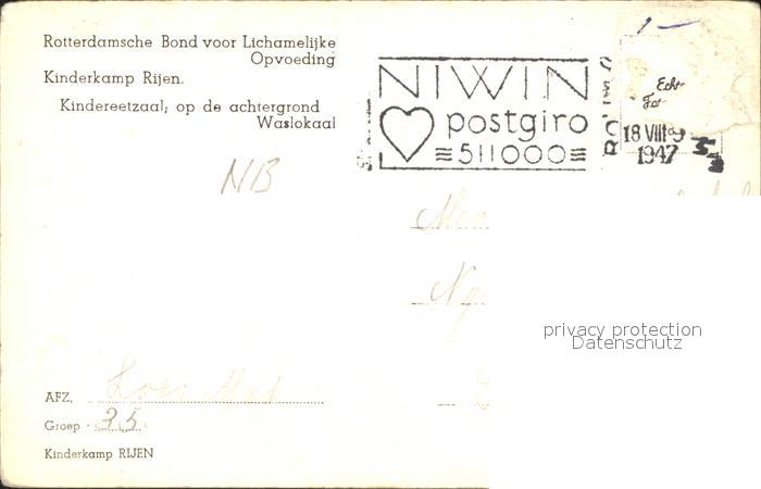 old postcard Rijen Kinderkamp Rotterdamsche Bond voor Lichamelijke Opvoeding postalisch gelaufen