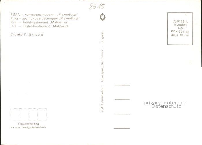 Rila Hotel Restaurant Maljowiza postalisch nicht gelaufen Erhaltung siehe scans