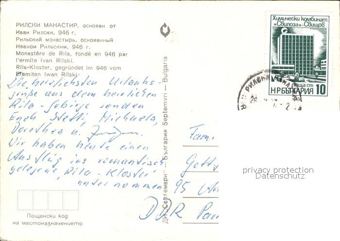 old postcard Rila Kloster postalisch gelaufen Erhaltung siehe scans